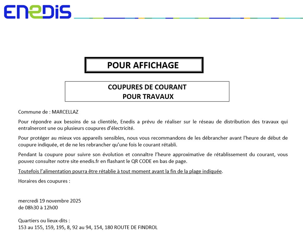 Coupure de courant le mercredi 19 novembre 2025 de 08h30 à 12h00