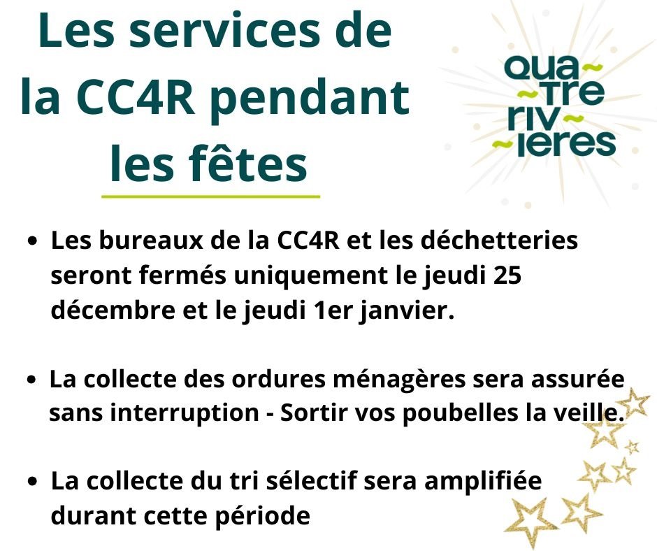 LES SERVICES DE LA CC4R PENDANT LES FÊTES