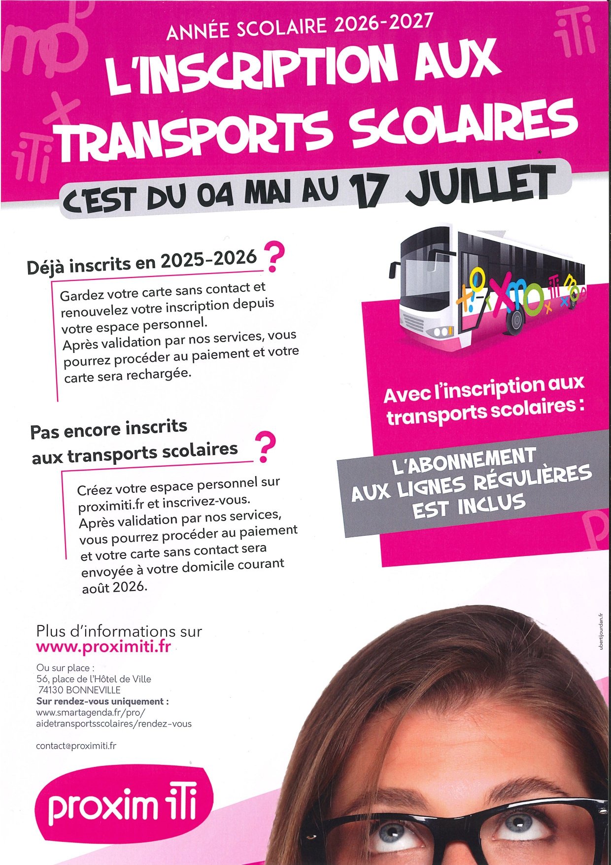 INSCRIPTION AUX TRANSPORTS SCOLAIRES DU 04 MAI AU 17 JUILLET 2026